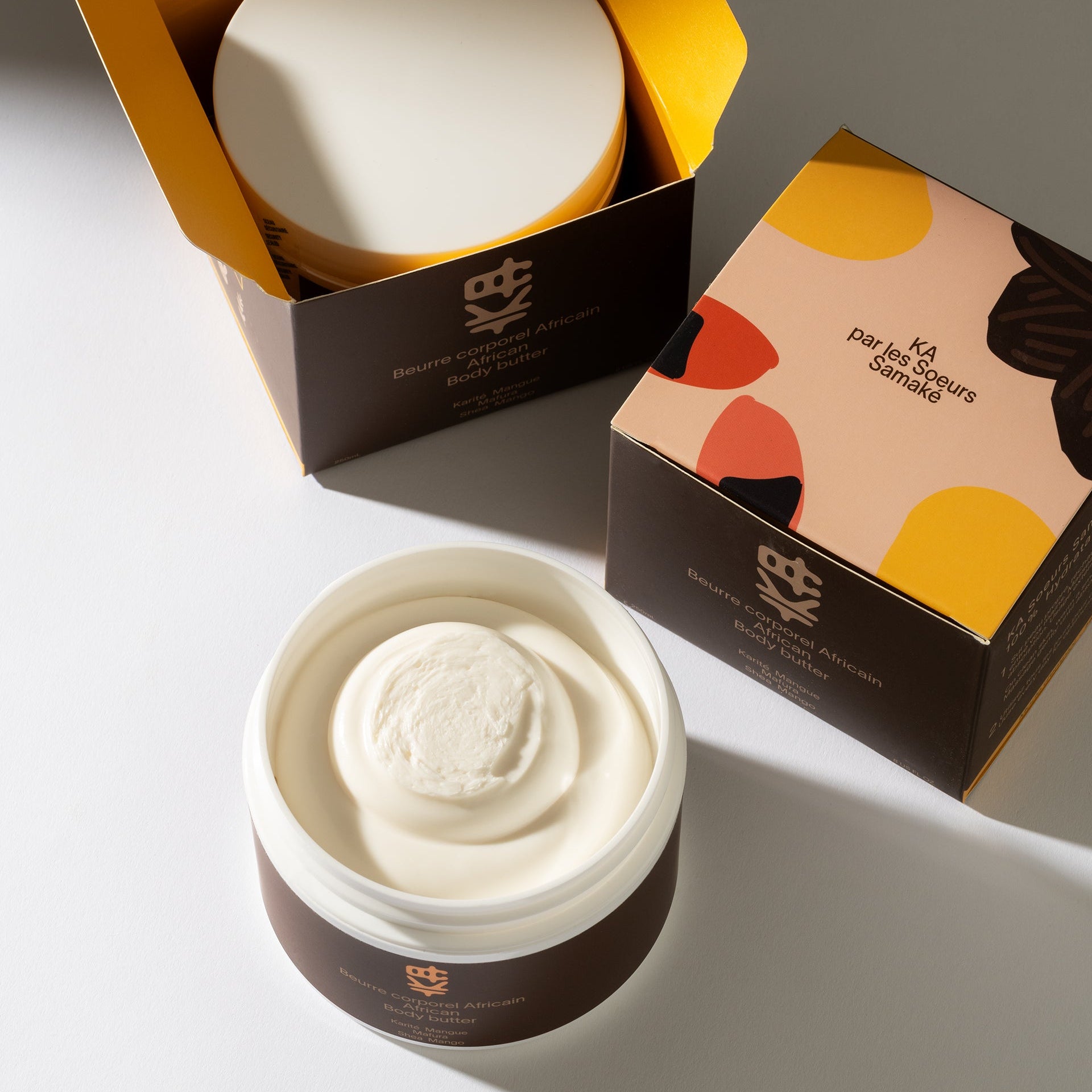 Le beurre corporel de KA n'est pas gras ni lourd. C'est un beurre très hydratant. Après seulement 5 minutes, vous oublierez que vous avez mis du beurre sur votre peau. Vos mains ne seront pas grasses et votre peau restera hydratée toute la journée.
